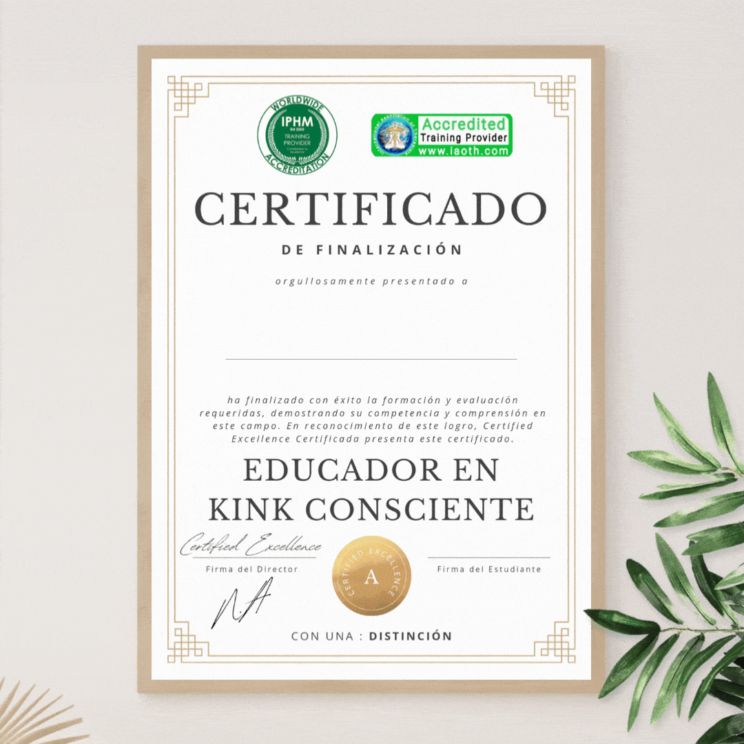 Al elegir nuestra formación, inviertes en una experiencia inigualable y en el establecimiento de tu reputación como Educador Certificado en Prácticas Kinky Conscientes. Una vez completada la formación, estarás capacitado para acompañar y transformar vidas, brindando seguridad y guía a cada persona que guíes en esta profunda exploración de uno mismo.